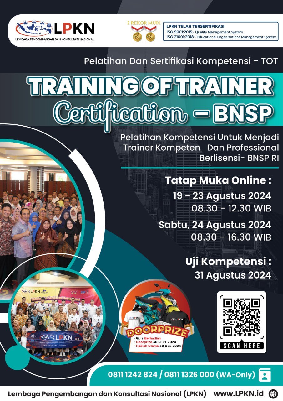 Sejak 2005, LPKN telah menjadi pilihan utama dalam menyelenggarakan ribuan pelatihan, dengan jumlah alumni mencapai hingga 3 juta anggota. Bergabunglah dengan kami dan jadilah bagian dari komunitas profesional