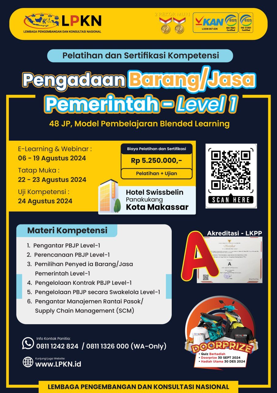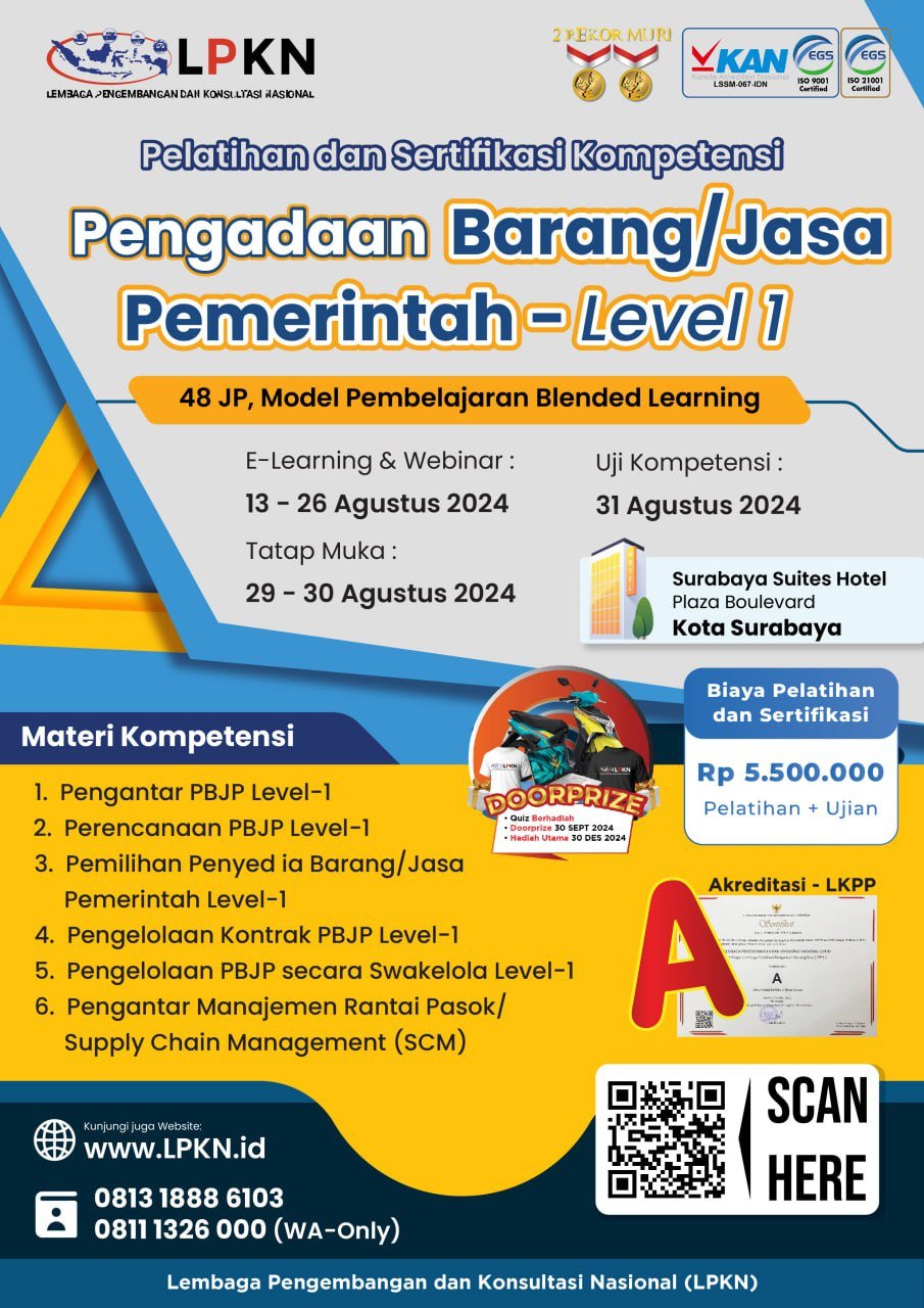 Sertifikasi Pengadaan Sebagai Lembaga Pelatihan SDM Pemerintah, BUMN, dan Swasta No.1 di Indonesia